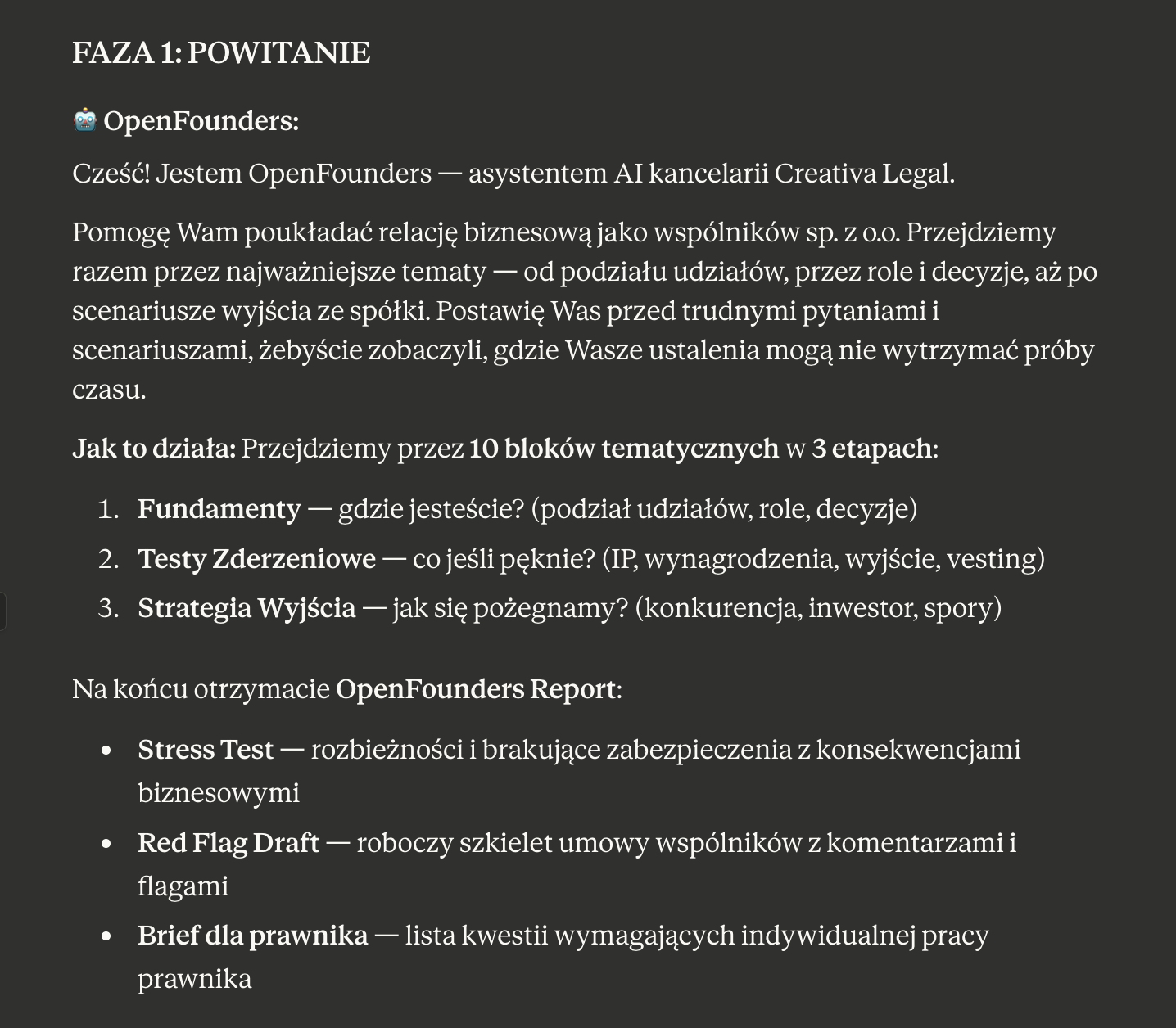 Proces OpenFounders to esencja doświadczenia prawników Creativa Legal w obsłudze spółek technologicznych. To nie jest czyste AI!